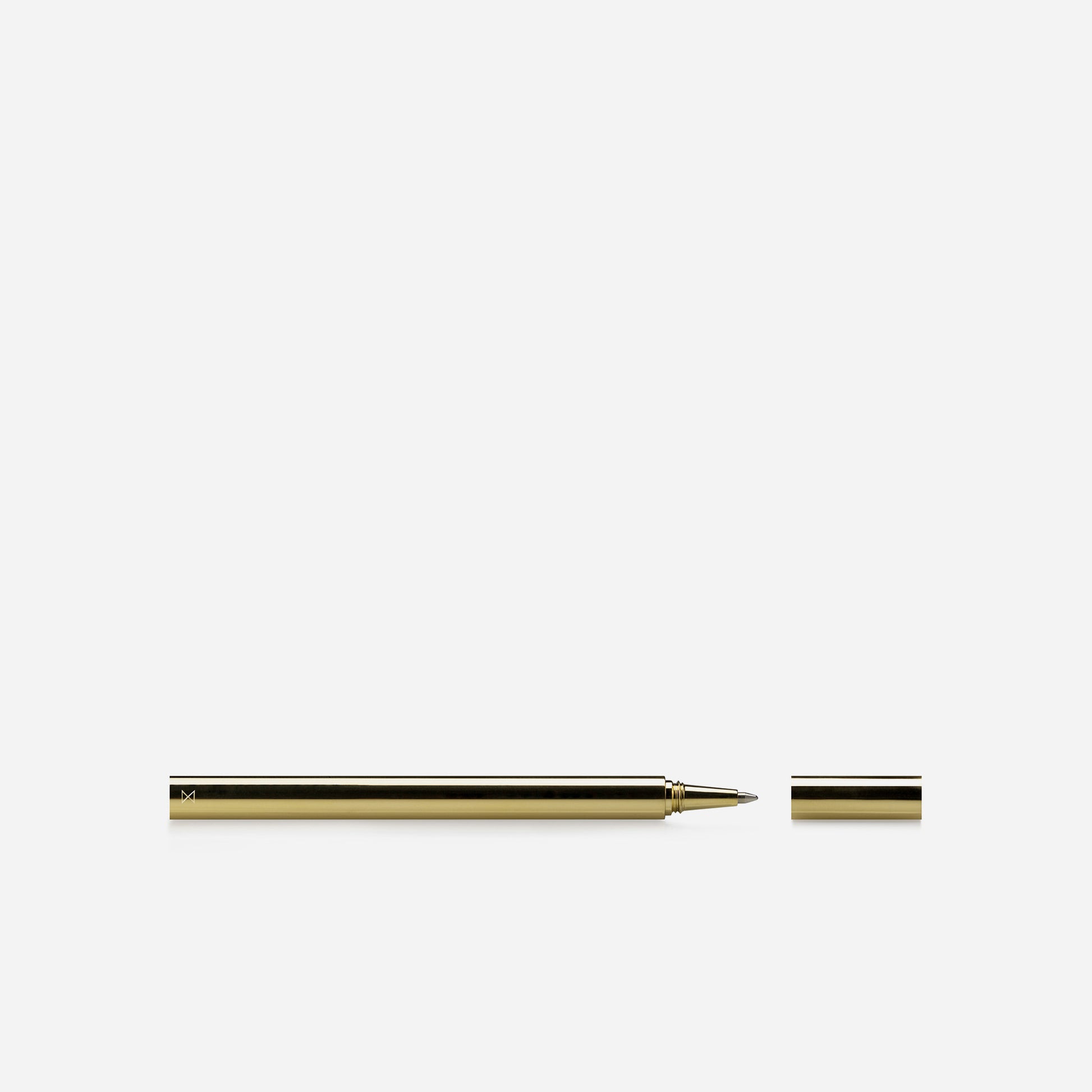 Travel Pen is precision turned from a single bar of solid brass or lightweight aluminium and is available in natural machined (satin) or polished finishes. The cap is a screw fit and can be taken off with a single half twist. The refill is replaced by removing the grub screw at the base of the pen with an Allen (hex) key.